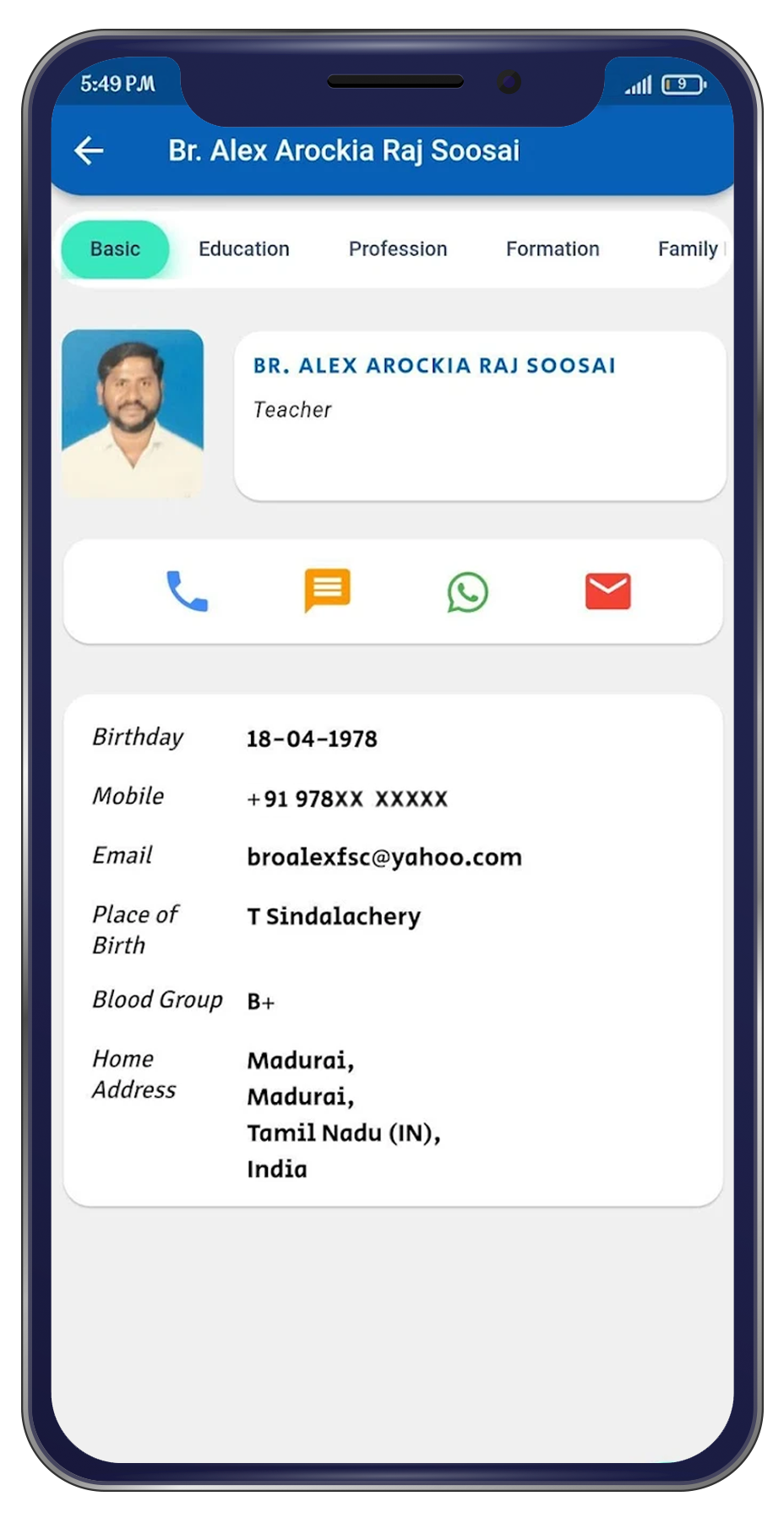 Record and update member information (Education, Sacraments, Profession, Formation, Holy Orders, and more) for the province